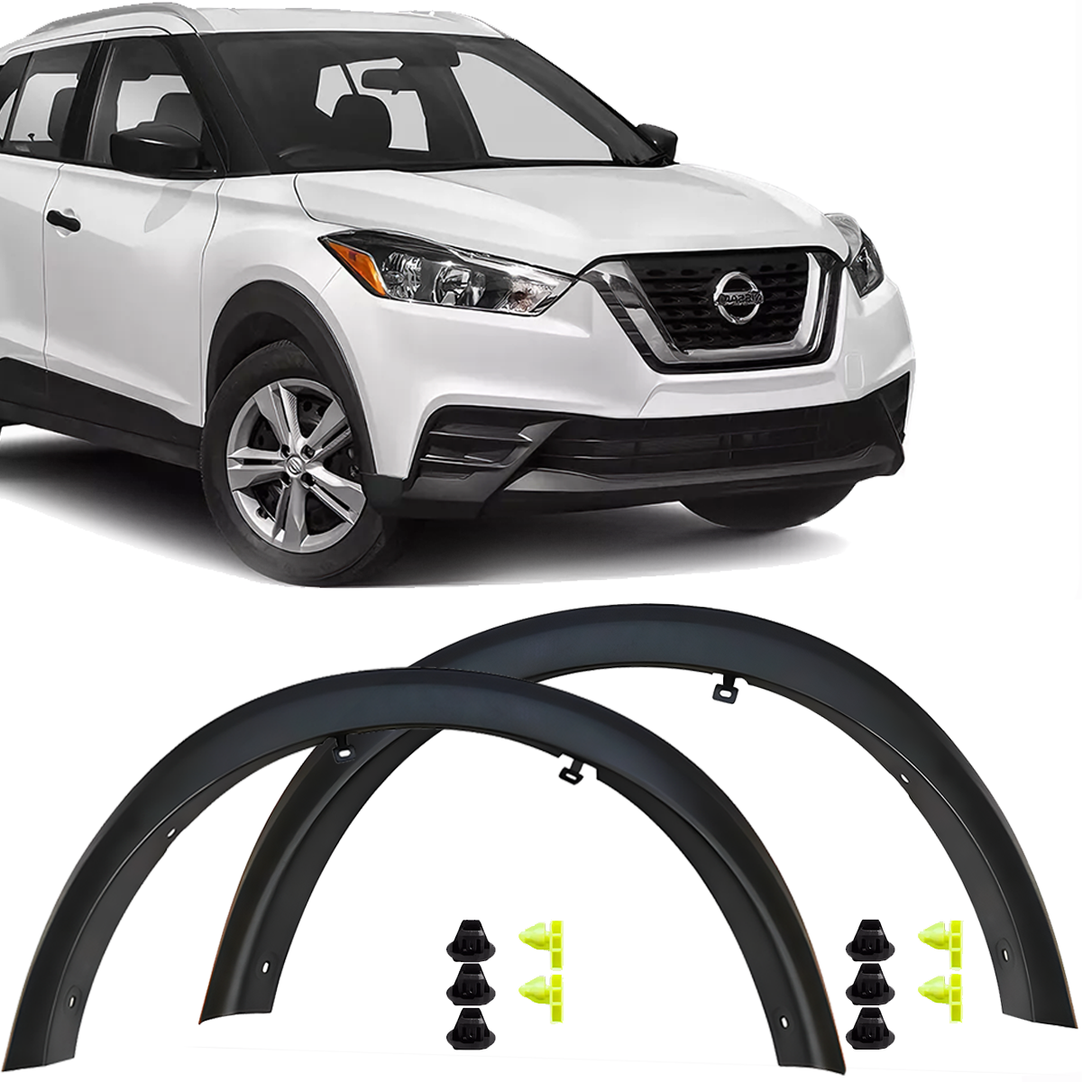 Par de molduras para paralama dianteiro, compatível com Nissan Kicks 2016 a 2020. Produto de alta qualidade, ideal para reposição e com perfeito encaixe, seguindo os padrões das peças originais.